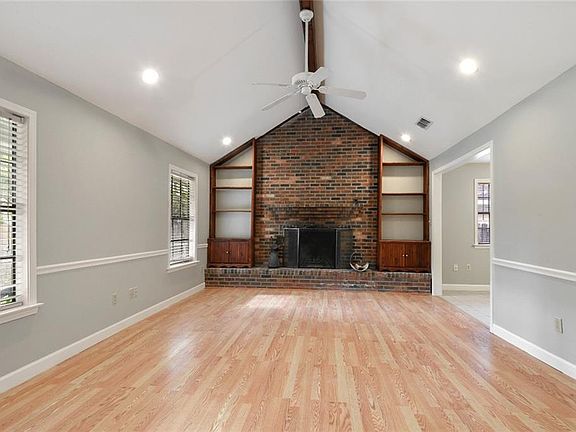 Enjoy relaxing on the lovely covered front porch of this charming 3 bedroom/2 bath home. When first stepping in, you’ll be at awe with the large brick fireplace and cathedral ceiling in the living room. Hard flooring through makes cleaning up a breeze and you’ll enjoy the oversized utility room. Enjoy entertaining on the shaded large back porch.