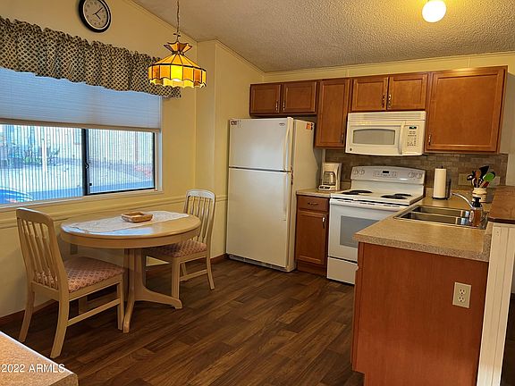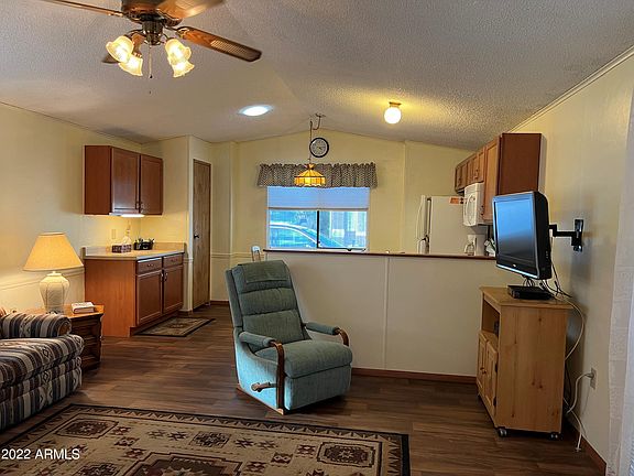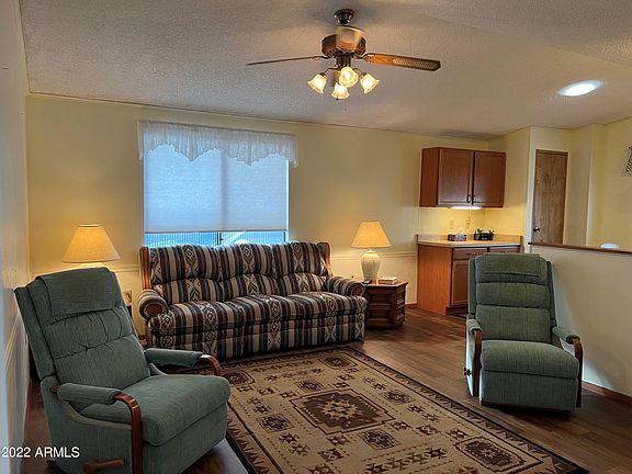You own your land in this beautifully maintained active gated 55 plus community. This home has updated kitchen and flooring throughout. Nice open floor plan with a 2nd bedroom that has a murphy bed so it can be used as living space as well. Home is on a large that offers patio area to enjoy the Arizona winters, citrus tree and additional parking! Community is near golf course, hiking, lakes, restaurants, shopping, hospitals and easy access to the freeways