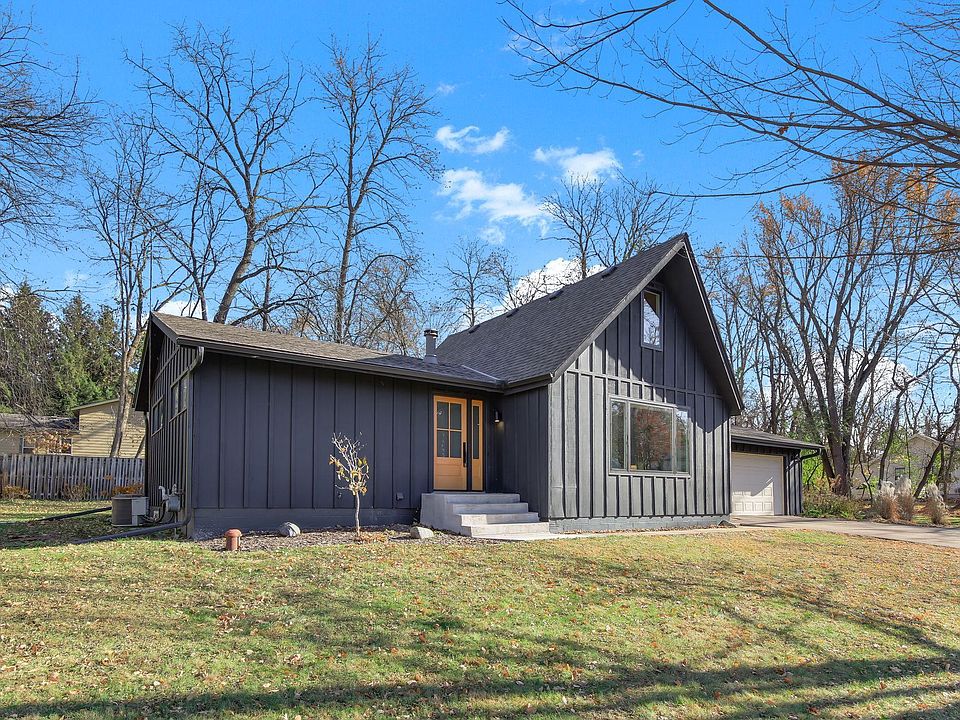The interior has been extensively remodeled, showcasing a brand-new roof and striking new wood ceilings that accentuate the A-frame architecture. Ideally situated near scenic biking and walking trails and the shores of Lake Minnetonka, this home combines convenience with natural beauty. The modified A-frame design creates an airy, open layout between floors, highlighted by soaring vaulted ceilings, a charming balcony, and expansive front windows that flood the space with natural light. The exterior has been freshly painted, and a spacious new wood deck provides the perfect spot for outdoor entertaining or quiet relaxation. The open kitchen and dining area feature a SolaTube skylight, adding brightness and warmth as well as private well water with osmosis filtration system! Upstairs, the versatile loft serves as an inviting multipurpose room with its own balcony and large windows—ideal for a home office, reading nook, or serene retreat. The lower level offers a third bedroom, a convenient 3/4 bath, a cozy family room, a dedicated laundry room, and a utility room. Additional highlights include a two-car attached garage, a wide yard with a tall storage shed, and a newly paved asphalt driveway.