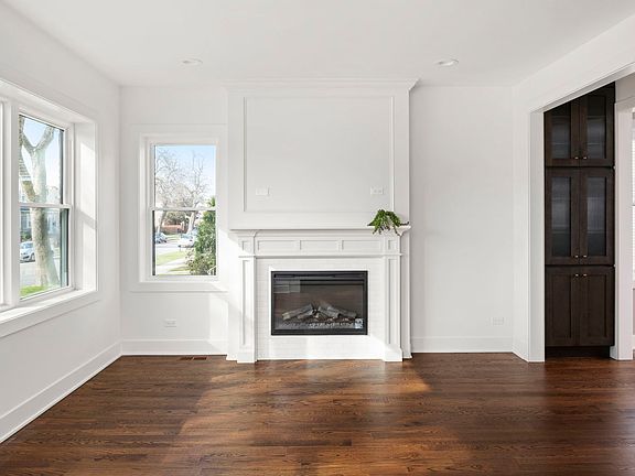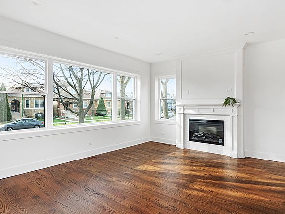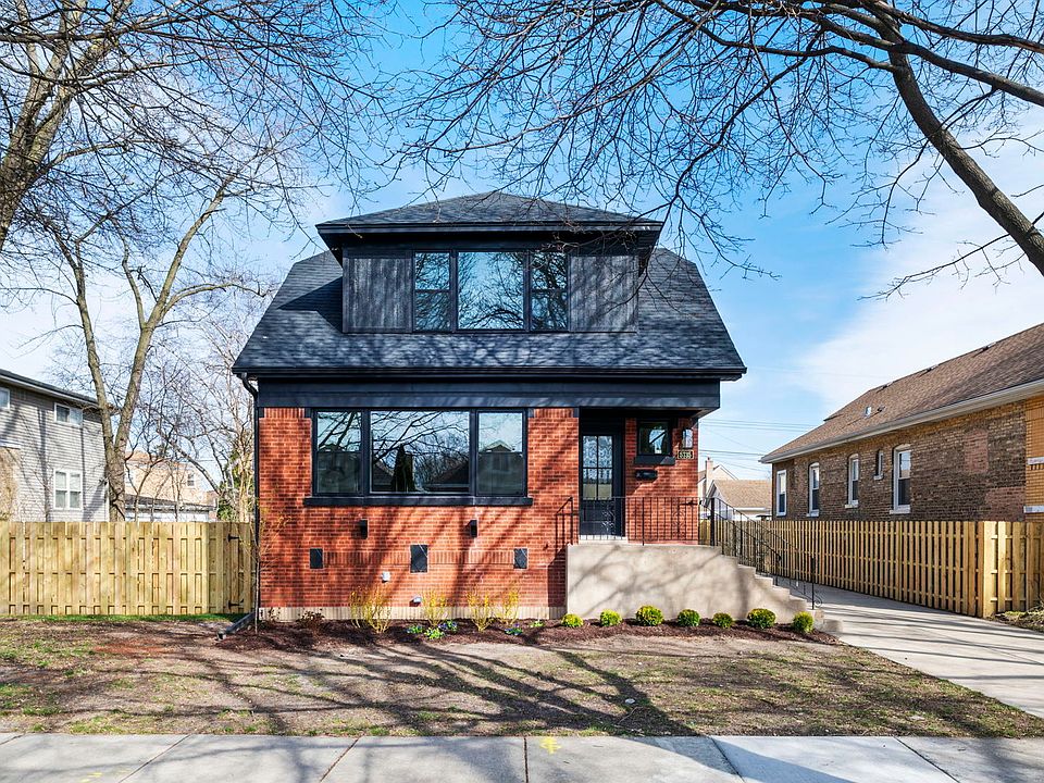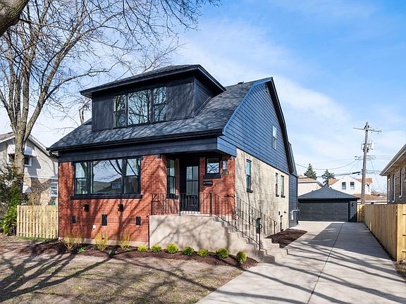 Sophisticated Living in this 95% rebuilt Jefferson Park beauty! This professionally designed and renovated home sits on an enormous double lot, with a side drive, two car garage, and loads of green space. The beautiful exterior, a perfect combination of the original structure and black painted James Hardie board siding, keeps the charm and character while creating a contemporary home. Once inside, the interior is infused with gorgeous natural light, thanks to the large windows throughout. New hardwood floors run throughout the first and second level. A formal living room with a stately, electric fireplace leads into the dining room, with custom wood beams and designer plaster light fixture. The kitchen is loaded with stunning features including sleek white cabinetry, quartz countertops, designer lighting, marble backsplash, wood beams and a statement custom hood. The dramatic butlers pantry provides access to a full walk-in pantry, and is perfect for entertaining. The family room has large patio doors leading out onto the spacious composite wood deck. The second level features 4 large bedrooms, 2 full bathrooms and laundry. The spacious primary suite includes two large closets, and a stunning primary bath with checkerboard tile floors, a massive shower, and a beautiful vanity area.The lower level is fully finished, featuring a large rec room with wet bar, full bathroom, additional bedroom, a second laundry room, and loads of storage space. The garage is equipped with an EV charging station. This home is in a great location, with easy access to both I90/94 and public transportation. The attention to detail throughout this home is close to none in the area!