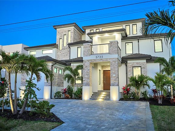 Stunning new construction ultra-luxury waterfront estate in Cape Coral w/10,463 adj. sqft and 80ft of waterfrontage. Inside, a grand living room with soaring vaulted ceilings & expansive floor-to-ceiling windows showcases panoramic views of the Caloosahatchee River. The open layout flows into a gourmet kitchen with imported Italian cabinetry & top-tier appliances. The primary suite includes a private balcony with breathtaking water views & spa-style bath with sauna. The 3rd floor features a multipurpose family room, large terrace & home theater setup. Additional features: private elevator, safe room & smart home tech. Outside, enjoy an infinity-edge pool, a wooden dock & tiki bar, perfect for entertaining. Thoughtfully designed to elevate every aspect of luxury waterfront living.