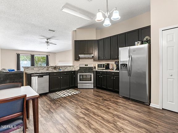 CULDESAC, SOLAR & a BRICK home with NAS/Cecil Field close by! Notable updates include a WHOLE HOME WATER SOFTENER and New HVAC systems installed in 2022, ensuring year-round comfort. ASSUMABLE RATE 5.5% or 1% credit up to $4,000 toward buyer closing costs and prepaids option SOLAR PANELS will be PAID OFF with acceptable offer. The timeless brick exudes curb appeal, inviting you into a thoughtfully designed interior. The spacious floor plan seamlessly connects the living areas, providing an ideal setting for both relaxation and entertaining. The well-appointed kitchen features modern appliances and ample counter space, catering to culinary enthusiasts who love GAS RANGE/STOVE especially. Primary bedroom offers a tranquil retreat with an en-suite bathroom, while three additional bedrooms provide flexibility for guests. The 4th could be a nonconforming bedroom or home office. For those cold evenings enjoy the gas fireplace and opportunity to host guests on the front porch or back patio.