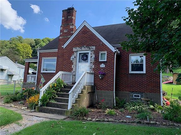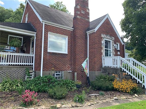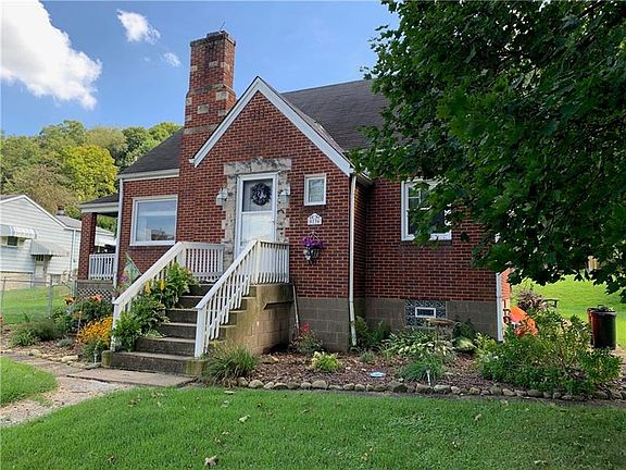 Four bedroom brick cape code with 2 full baths in Boston Area of Elizabeth Township. Covered side porch. Vinyl plank floors in living room, dining room, kitchen and 1st floor master bedroom. Area for small table in eat-in kitchen. Full bathrooms on main and 2nd floor. Updated windows - 2006. Glass block windows in basement area. Updated electric service - 2005. Three newer doors. Gas fireplace in living room. Large open basement. Storage shed included.