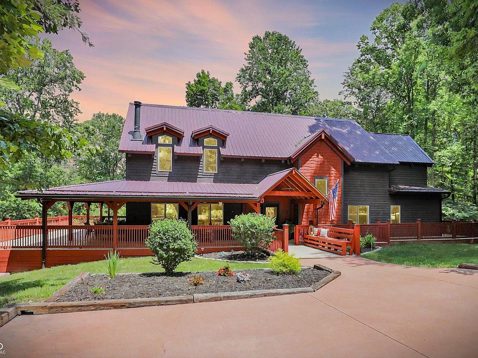Welcome home to this AMAZING Upscale, Rustic home sitting on over 5 acres with breathtaking views overlooking Lake Lemon and the treetops below! This is the home you have been looking for! Pathways is a beautiful Retreat living with private peaceful surroundings, offers easy access to nearby activities at Lake Lemon, Yellowwood State Forest, Riddle Point Park & Beach, Lake Lemon Marina, Boating, Camping, Hunting, Tulip Trace Nature Trail, Scenic Overlook, Hiking & Fishing! Just 20 Minutes from Brown County & Bloomington! This One of Kind Home offer 4800 Square feet of Finished Living space w/Oversized garage that offers a Large storage area. This Quality Timber Framed home features a 2 Story Great Room w/Amazing Views, Gourmet Kitchen w/high end appliances, spacing Dining area w/wood burning fireplace, Gorgeous Red Oak hardwood floors, Large Main Floor Primary Suite w/sitting area, Private Spa Bath that offers a custom walk-in shower and separate Soaking Tub, Double sinks & walk-in closet! Check out the upstairs Loft/Office space with Lake Views, 2 spacious bedrooms plus a Large Bonus rm. Entertaining space??... We have it... you will not want to miss the walk-out lower level that offers a Large Billiards Game rm, Custom bar, w/wine coolers, Spacious Family Rm, 4th bedroom and full bath! You will absolutely LOVE the outdoor space that offers over 3000 sq feet of outdoor covered wrap around porch/patio space with breathtaking views. Hang out and watch the game at the Outdoor bar area and do not forget the path to your Large outdoor Fire pit sitting area! This is your chance! Ready set GO!!