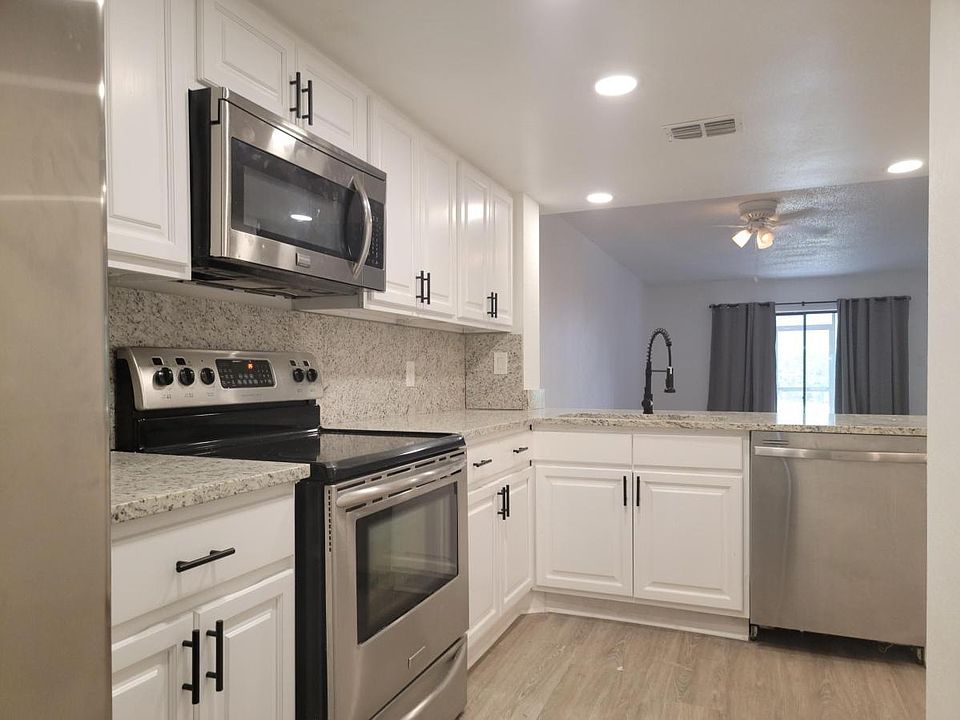 Over-sized windowsSeparate living-roomGranite counter-topsCeramic subway tiled wallsHard-wood floorsPlenty of cabinet spaceStainless steel appliances