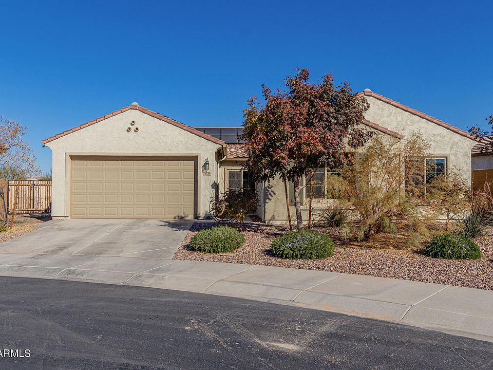 Energy-efficient 4-bed, 2-bath home in Anthem at Merrill Ranch! This gem sits on a cul-de-sac backing a community park. The inviting interior boasts abundant natural light, a neutral palette, and tasteful tile & wood-look floors. The kitchen features SS appliances, a walk-in pantry, wood cabinetry, recessed & pendant lighting, and an island with a breakfast bar. The cozy den is perfect as an office or reading nook. The large main bedroom offers an ensuite with dual sinks and two walk-in closets. Updates include new carpet and fresh paint in all bedrooms, epoxy garage floors, and R-38 attic insulation with solar exhaust fans. It also includes new window coverings throughout, abundant storage, and solar panels! The backyard has artificial turf and a covered patio for relaxing or BBQs.