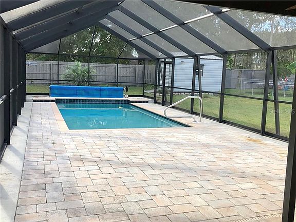 Nicely renovated 2 bedroom,2 bath pool home on oversized city lot. Spacious open floor plan, tile flooring through out home, plantation shutters, kitchen has updated wood cabinets, stainless steel appliances and island. Master bedroom has step in shower, updated flooring, vanity and light, hall bath updated vanity, flooring and lighting. Glass sliding doors lead out to the relaxing heated screen enclosed pool and plenty of room to entertain, pool added 2016. Privacy fenced back yard close to schools, medical and shopping. Move in ready