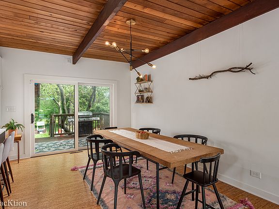Totally renovated mid-century modern home nestled on a big, beautiful private lot in Downers Grove. This architect owned home has a stylish modern feel that is accentuated by vaulted ceilings and wood beams, natural cork flooring and large floor to ceiling windows that flood the home with natural sunlight while taking in the views of the amazing yard. Enjoy the state of the art new kitchen with white custom cabinetry,stainless steel appliances, large island, quartz counters, open shelving and skylight. The adjacent space lends itself to a large table for family gatherings and has a sliding glass door to the deck. The living room is open to the kitchen and also has sliding glass doors to a balcony that overlooks the front yard perfect for morning coffee. The master retreat is stunning! More large windows let you take in the views of the backyard. The luxurious ensuite bathroom has a large shower, custom double vanity, beautiful fixtures and separate toilet room. The two additional bedrooms have ample closet space and share a new bathroom. The lower level features a family room, half bath, laundry room and additional storage space. The backyard features a large grassy area and patio, the perfect place to host summer parties and bonfires. Plenty of storage space in deep two car garage. A quick walk to downtown Downers Grove to enjoy the Farmers' Market, restaurants, coffee shops, movie theater and quaint stores. Walk to Hillcrest Elementary School.