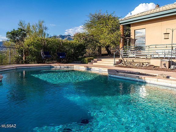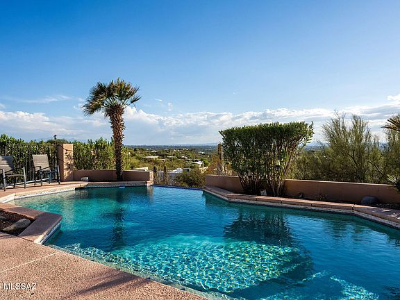 The best part about this stunning Catalina Foothills home are the views -- sweeping city lights, dramatic mountain vistas, and both sunrise and sunset to enjoy every day. Designed for indoor-outdoor living, this 4-bedroom, 3-bathroom home offers 3,240 sq. ft. on nearly an acre, with a wrap-around balcony perfectly positioned to capture it all. The luxurious primary suite features a two-way fireplace, soaking tub, dual sinks, a spacious closet, and a walk-in wrap-around shower.The open kitchen flows into the family room with its cozy fireplace and includes stainless steel appliances: side-by-side refrigerator with water/ice dispenser, cooktop, oven, built-in microwave, and dishwasher. A large laundry room with upper and lower cabinetry adds convenience. The paid-for solar system keeps utility bills impressively low as little as $17 a month for some months! With its thoughtful floor plan, architectural design, and one of the best lots in the city, this home is perfect for entertaining and everyday living. Located in the popular Catalina Foothills near upscale shopping, dining, resorts, golf, and hiking.