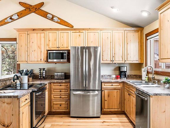 Classic Sunriver home has four bedrooms, three bathrooms and a loft. You don't want to miss this Sunriver GEM! Perfectly located on a corner lot, surrounded by common areas, this home is very convenient to the SHARC; Village; Marina; Stables and more. The Great Room has an open floor plan with vaulted cedar ceilings and wall accents. Enjoy the floor to ceiling lava rock gas fireplace warming the entire home and adding to the cabin feel so enjoyed in Sunriver. Many updates completed in 2018-2019 utilizing an interior designer include primary bath; lower level bath/laundry and beautiful hickory plank wood floors. Carpet, appliances, exterior & interior paint, furnace and A/C have been updated in the past few years. The spacious wrap around Mahogany deck, adjoining the private hot tub area, creates a quality outdoor experience to match the homes fine interior. BBQ plumbed for Gas. Newer Tankless Hot Water Heater. SHARC paid.