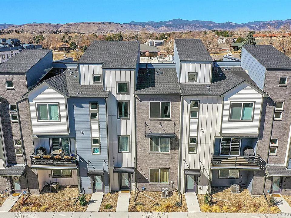 This luxury townhouse offers some of the most breathtaking, completely unobstructed mountain views in the area. From the kitchen, upper bedroom, and private roof deck, you'll take in panoramic vistas of the Front Range, stretching from the southern peaks all the way to Boulder. Start your mornings with coffee and mountain views and end your day with spectacular sunsets from your deck. Beyond the views, this home is in a prime location. Situated on the far western side of the community, it provides immediate access to trails in Van Bibber Open Space, is just minutes from Stenger Sports Complex, and offers easy commuting with quick access to light rail and Olde Town Arvada. Inside, the home is in pristine condition with an open-concept floor plan. A gourmet kitchen features a custom island, matching upgraded appliances -- including a dishwasher -- and even a washer and dryer. The spacious dining area and living room create an inviting space for entertaining. With a full bath on every floor, convenience is built in. Upstairs, the large primary bedroom boasts a walk-in closet and en-suite bath, while an additional upstairs bedroom enjoys those stunning mountain views. Don't miss this rare opportunity to own a home where location and views come together perfectly!