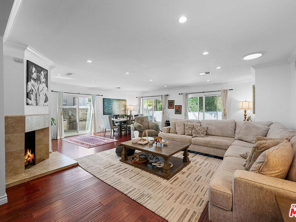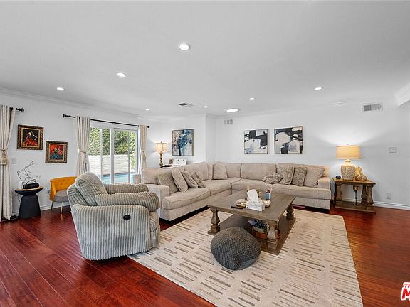Located in a highly sought after Tarzana neighborhood, this bright and open single story home offers 3 bedrooms, 2 bathrooms, and a sparkling pool. The upgraded kitchen features granite countertops, new stainless steel appliances, a garden window, spacious cabinetry, and ample counter space. The living room showcases gleaming wood floors, high ceilings, recessed lighting, and a cozy fireplace, with sliding doors that create a smooth indoor-outdoor flow to the pool and side yard. Both bathrooms are beautifully designed with modern vanities and updated showers. Wood floors continue throughout the bedrooms and hallways, enhancing the home's warm and elegant feel. Set on a large, flat lot, the property boasts impressive curb appeal with a wraparound yard that provides plenty of private outdoor space. Perfect for entertaining, the backyard includes a built-in BBQ, fire pit, and large pool, an ideal retreat for gatherings with family and friends.