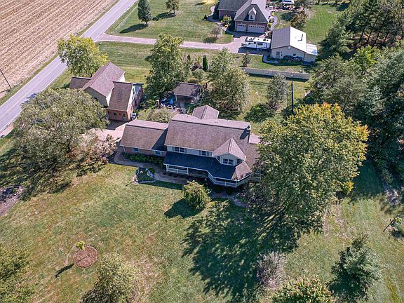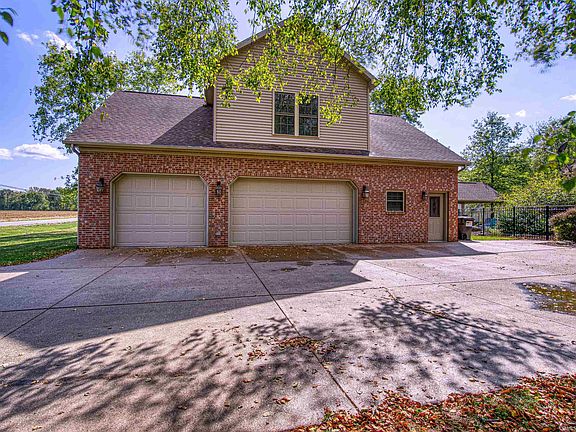 Situated in Newburgh, this 3 bedroom, 4 bathroom home is spread over 2 acres and features a 2 car attached garage and 3.5 car detached. The heated and cooled 3.5 detached garage is a rare opportunity itself with over 2,000 sqft, epoxy flooring, a work room, a full bath, and a 19x46 semi finished bonus room; perfect for any hobbyist. As you enter, the foyer and open layout of the house welcome you with a generously sized living room featuring a cozy gas fireplace to your right, and a formal dining room on your left. The well-designed eat-in kitchen seamlessly connects to the dining room, perfect for hosting dinners. The modern kitchen includes stainless steel appliances and a functional island with bar seating. For more laid-back meals, the adjacent cozy breakfast nook is a great spot to enjoy a cup of coffee. The office is conveniently located next to the living room and features built-in desk space, shelves, and cabinets. It can be accessed from both inside the house and from the front porch, which is especially useful for a home-based business. This home features a versatile family room adjacent to the office space, perfect for multiple uses such as a bedroom, playroom, library, or craft room. The room is enhanced by stunning built-in shelving and a bench, adding to its functionality and aesthetic appeal. The second floor of the house consists of three bedrooms. The owner's bedroom comes with a walk-in closet and 2 additional closets. The ensuite bathroom includes a soaking tub, walk-in shower, and water closet. The two remaining bedrooms feature their own walk-in closets, and share a Jack & Jill bath. This property boasts a three-season room, a roomy patio, and a fenced backyard. Kick back and relax by the cozy fire pit while taking in the warm and welcoming ambience. Or, if you prefer a cooler environment, enjoy the cool breeze under the shelter house fitted with electric and a ceiling fan. With all the amenities and elegance, it's easy to see why you won't want to leave this amazing home.