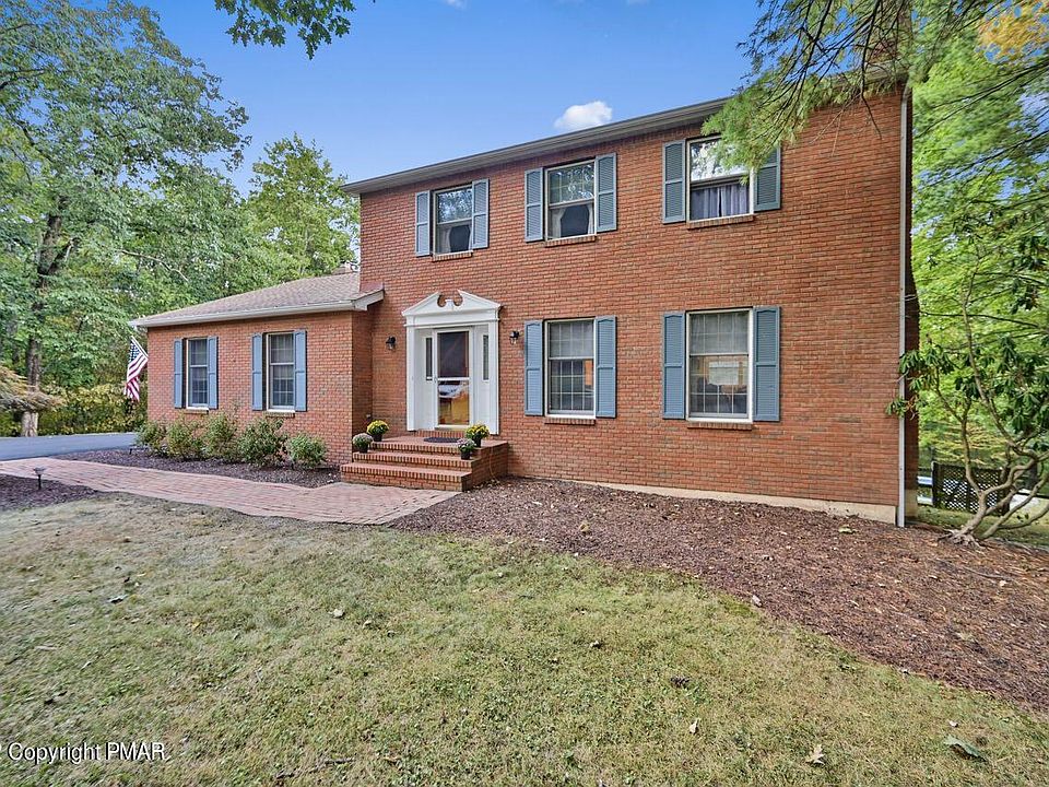 Immaculate Colonial in the heart of Stroudsburg. Offers light and bright family room with vaulted ceilings, updated kitchen with breakfast bar, new quartz counter tops and tile backsplash, formal dining room, formal living room with hardwood floors and fireplace, large primary bedroom with private primary bath and walk in closet, finished walk out lower level that offers huge finished recreation room, private office and full bath, private rear deck overlooking manicured back yard with inground pool., 3 garages, and paved driveway. Fantastic property, this will not last!