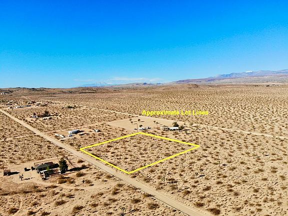 2.27 acres with privacy, road access, and utilities appear to be in the street. Starry nights. Mature Joshua Trees and cholla cactus. Fenced. Not far from the Joshua Tree National Monument where in 2019 almost 3 million tourists visited. 57 miles to Big Bear. 50 miles to Palm Springs. 137 miles to downtown Los Angeles. Views of Goat Mtn., The Bullion Mtns, Mt. Hidalgo, Reche Mtn, Spy Mtn, and snow caps on Mt. San Gorgonio. Contact the water district and electric company for all your questions about the utilities. Call the county planners for all your questions on building and usage. APN: 0630-191-15-0000 Don't Wait! - Call Now! Not a legal address. GPS: 34.260312, -116.367530