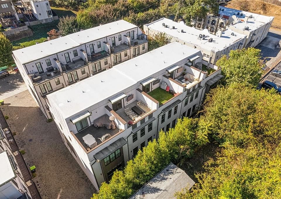 Welcome to 574 Boulevard Place NE #3, a stunning 4-level townhome in the heart of Old Fourth Ward that blends modern design with everyday comfort. Just a short walk to Ponce City Market, the Eastside BeltLine Trail, and all the best of intown Atlanta, this home offers a Walk Score of 88 and the lifestyle to match. Inside, a private elevator connects all four levels, starting with a spacious 2-car garage and a full bedroom suite with private bath and an artistic accent wall—perfect for guests, a quiet workspace, or a creative studio. Upstairs, the chef’s kitchen features a 6-burner Wolf range, professional vent hood, quartz countertops, marble herringbone backsplash with hidden outlets, under-cabinet microwave, and sleek, glossy ceiling-height cabinets—a standout feature reflecting today's top design trends that favor style, function, and personality. The open living and dining areas include a fireplace, designer lighting, and two balconies that invite fresh air and natural light. On the third level, the primary suite spans the entire floor, and includes a balcony, brick accent wall, luxury bathroom with backlit mirrors and under-cabinet lighting, a large custom closet, and a conveniently located laundry room. The top level offers two rooftop decks with sweeping views of Ponce City Market and the Bank of America tower, along with a wet bar, beverage fridge, full bath, and additional bedroom—perfect for entertaining or retreating in peace. Beautiful and durable engineered hardwoods run throughout, grounding the sleek design in warmth and comfort. This home is stylish, functional, and quietly luxurious—urban living at its finest! (Furnishings are negotiable)
