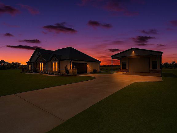 Custom-built masterpiece boasts stunning open floorplan with 30X50 Electric Workshop. NO HOA on Acreage. Step inside to find soaring cathedral ceilings, rich wood beams & magnificent quartz stone fireplace. Luxurious master suite offers a spa-like bathroom complete with frameless glass shower sleek modern tile, & dual quartz sinks. Enormous built-in closet provides lots of storage space. Open-concept kitchen, features large walk-in pantry, trendy backs plash, elegant quartz countertops, shaker cabinets that extends to ceiling with glass upper cabinets & back lit lighting. Situated on over 1.396 acres, offering a serene country setting with mature trees, providing plenty of room for kids to play, family gatherings, or relaxing on the huge covered patio. Experience a perfect blend of luxury & tranquility in this modern farmhouse. Built with the highest energy efficiency in mind, home includes encapsulating foam insulation & sits on a durable peered & slab foundation, ensuring long lasting quality & comfort.