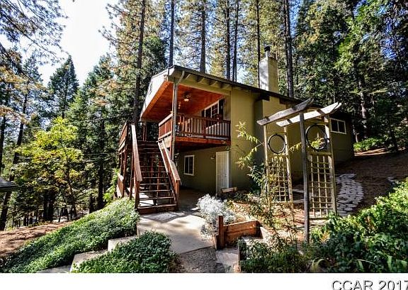 This Blue Lake Springs chalet is nestled between Fly in Acres Lake, Snowflake Lodge, and Sequoia Woods Country Club. The extra large 2 car garage was built 13 years ago..fits 2 cars AND your golf cart! Newer dual pane windows thru out, updated kitchen, newer laminate wood floors in the kitchen, main level bathroom recently remodeled, newer front covered deck w/ceiling fans, large home site providing privacy and beautiful views, convenient central heat, and a wood burning stove insert. County states 2 bedroom/2 bath but clearly a 3 bedroom 2 bath w/master suite on lower lever!