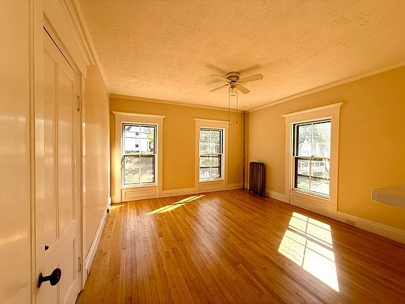 Sunny and spacious one-bedroom, available immediately. Heat included! Located on the second floor of this historic property, the unit features a large and flexible layout, plentiful windows and natural sunlight, hardwood floors, private three-season porch, and several closets. There is one assigned parking spot, coin op laundry is located in the cellar. The location provides quick access to interstate 93 and 293 and is only about forty-five minutes to the New Hampshire seacoast, Lakes Region, or Boston, Massachusetts.