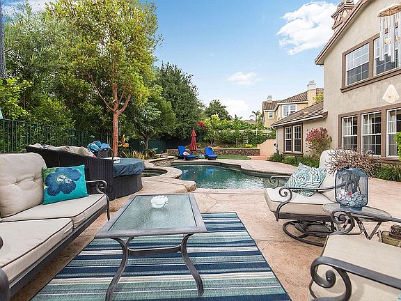 Welcome Home to the beautiful Oaks neighborhood! Gated 5 bdrm, 5 bath pool home w/ 3-car garage, on a cul-de-sac, w/ private trails! Natural light fills the home & includes built-in features & an amazing entertainer's backyard. Main floor rooms incl: formal living w/fp; dining w/pool table; family w/fp; En suite guest w/ priv. entr. & built-in wall bed; office; large eat in kitchen, butler pantry, laundry w/ built ins. The high ceilings & windows bring the outdoors in. Wide stairway leads to the 2nd floor loft, now a home gym. Two bdrms share a Jack-n-Jill bath and a 3rd bdrm w/ ¾ bath. The large master suite completes the upstairs w/ double entry doors, a lovely sitting area overlooking the gorgeous backyard & an en suite bath incl. jacuzzi tub, travertine shower, separated dual sinks & walk-in closet. This backyard is your Staycation Central! At the heart is a Pebble-tec pool & spa, mature trees & plants anchored by maint. free Astroturf. A pergola shades the dining space, which adjoins an island seating area w/ BBQ, side burner, and refrigerator. A half basketball sport court is great for any activity. Ext. bathroom door is great for the pool, an encl. dog pen/garden area, and an additional alcove w/entrance finishes the space. Highlights: An amazing gated neighborhood w/ miles of trails accessed within the gates. Close to golf, shopping & great restaurants. Updates include a newer large unit A/C, recently installed whole house fan, newer pool equipment, newer bbq, side-burner, and recent lower level waterproof durable laminate flooring.
