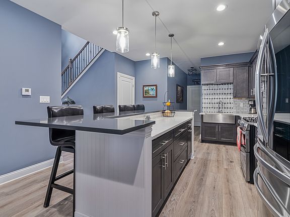 Experience the epitome of luxury living in this upscale townhome, perfectly positioned on a quiet, private road near New Lenox Commons, offering unparalleled access to a state-of-the-art public library, police station, outdoor concert venue, serene pond with waterfalls, recreation hall, and two beautifully designed parks. Outdoor enthusiasts will love the proximity to Old Plank Trail, while commuters enjoy seamless access to the Metra, I-80, and I-355, plus endless shopping and dining options just minutes away. Inside, this remarkable residence showcases a chef-inspired kitchen adorned with designer slate-gray soft close cabinets crowned with molding, quartz counters, a custom subway tile backsplash, farm sink, oversized island with breakfast bar, and premium Wi-Fi/App-enabled stainless steel appliances-including a French door refrigerator that creates craft ice cubes. A spacious walk-in pantry and main-level laundry room with sink and custom bench with hooks add convenience and style. The sun-drenched living room features a cozy fireplace and opens to a maintenance-free deck with natural gas hookup overlooking a tranquil pond. Retreat to the desirable main-level master suite offering a walk-in closet and a private spa-like bath with dual raised quartz vanities and an oversized shower. Upstairs, discover a second generously sized bedroom, a sleekly designed full bath, and a huge versatile loft perfect for a family room, home office or additional bedroom. A full English/look-out basement provides endless possibilities for additional living space. A large driveway leads to the attached garage. This exquisite townhome blends upscale finishes with modern conveniences in an unbeatable location-an extraordinary opportunity not to be missed.