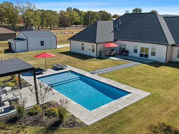 This stunning home is loaded with amenities! Built in 2023 with additions over the last year. The home sits on 1.39 acres. The interior is clean and sleek. The kitchen is overflowing with storage in the ceiling height cabinets and walk in pantry. The primary bed and bathroom are a sanctuary with its massive walk-in closet, free-standing soaking tub, and glass-wrapped walk-in shower. The second living room/sunroom has its own fireplace. As you walk out the back door you are greeted by a LARGE 16x32 heated salt water pool with a shallow lounge area at one end. You won't get sunburnt under the permanent awning. If you run out of room in the attached 3 car garage there is an additional detached 24x24 garage shop with door opener and insulated walls. Bring your friends and family to see this beautiful home!