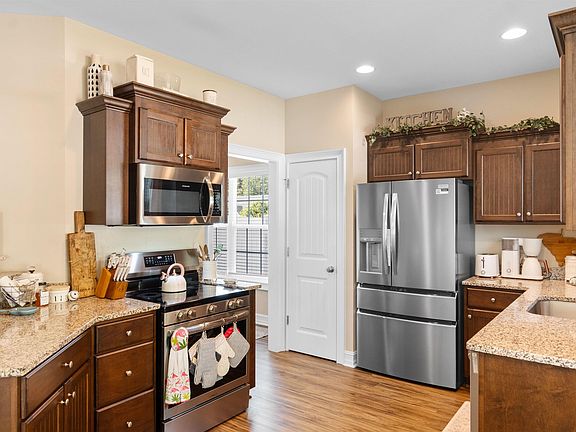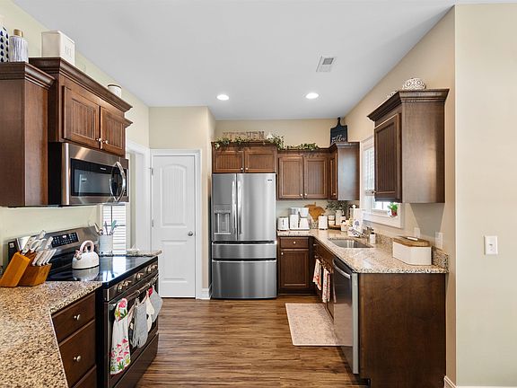 Better than new, this 2022-built home is loaded with upgrades and custom touches throughout. The kitchen boasts brand-new appliances and stylish updated chandeliers, while the owner’s suite offers a spa-like retreat with a soaking tub. The garage includes a split unit for year-round comfort, and the fully fenced backyard is designed for entertaining with an extended patio, fire pit, and screened-in porch—all situated on a desirable corner lot. Low HOA fees cover both golf membership and pool access, so you can enjoy resort-style living every day. Ideally located, this home is less than 15 minutes from historic downtown Conway and just 20 minutes from the beach.