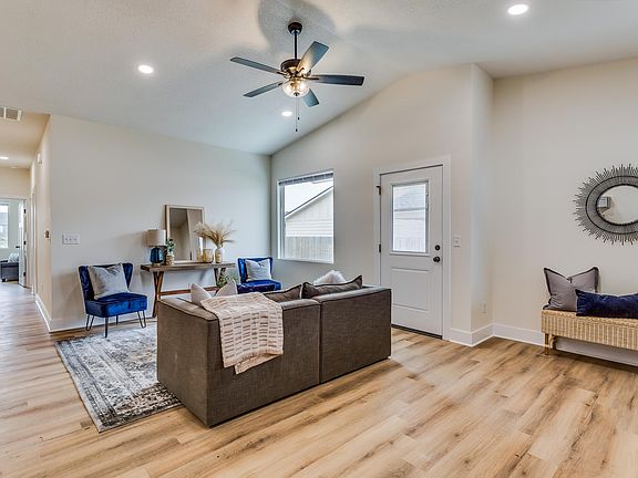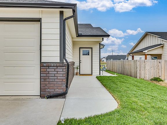 Spacious living area with a covered patio and two car garage. Quartz kitchen and bathroom countertops. Master bedroom with walk in closet and glass shower enclosure with seating. Kitchen features an island and pantry along with stainless steel appliances. Location is close to multiple highway systems (US 254, K-96, I-135), gas stations, restaurants, and grocery shopping center. Privacy fence partition and off street parking.