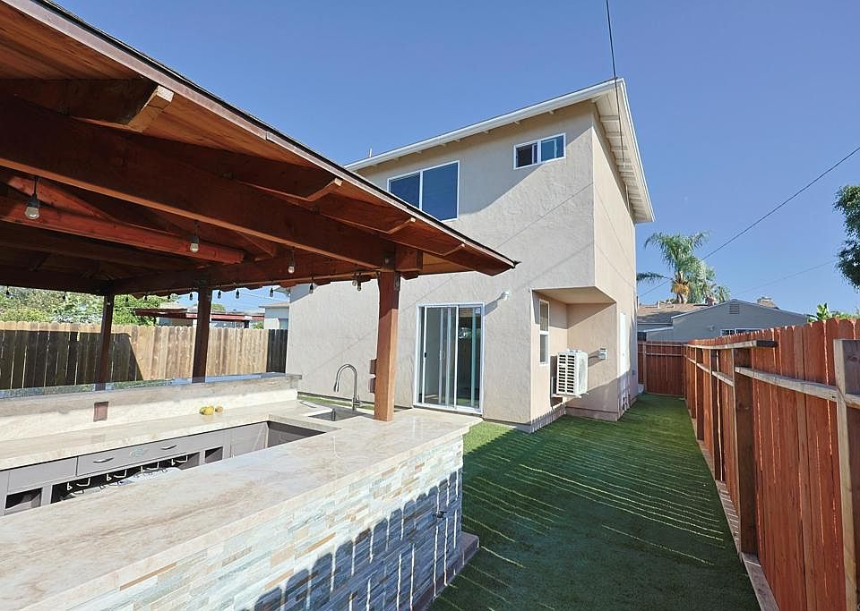 Be the first to call this brand-new, never-lived-in home yours! Move-in ready and designed with modern finishes, smooth walls, soaring ceilings, and A/C, this property blends style with comfort. Privately set at the rear of the lot, enjoy a spacious gazebo, low-maintenance turf, and a relaxing jacuzzi. The entry level offers three bedrooms, two full baths, in-home laundry, while upstairs features a junior suite with its own bath and walk-in closet. A long driveway provides tandem parking for two cars. With freeway access minutes away and just 15 minutes to Downtown San Diego, naval bases, and more this one won't last!