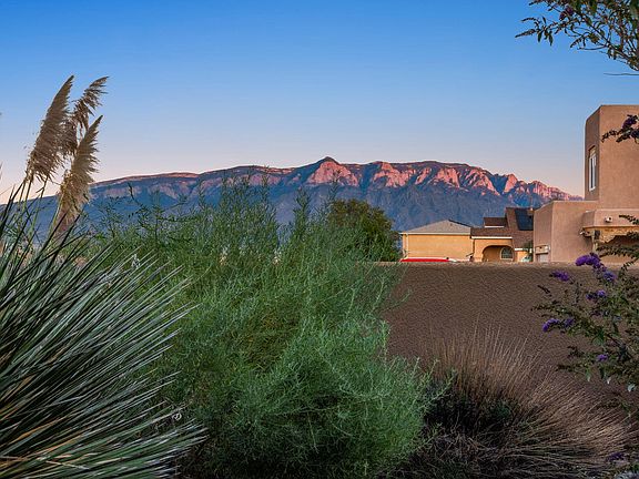 Beautifully maintained custom Rio Rancho home with sweeping Sandia Mountain views and thoughtful updates throughout. A newer TPO roof (2021), fresh interior/exterior paint (2022), tinted windows, and a hot-water circulator bring comfort and peace of mind. The primary suite boasts a new ceiling fan/light (2023) and dedicated hot-tub wiring--perfect for relaxing under the stars. Landscaped front and back courtyards with sprinkler/drip systems invite morning coffee or sunset gatherings, while a privacy fence (2021), erosion control, and new driveway to the backyard add function and style. Additional upgrades include a new septic pump and toilet (2023), utility sink faucet (2024), and professional duct cleaning (2022). Truly move-in ready for serene, view-filled living.