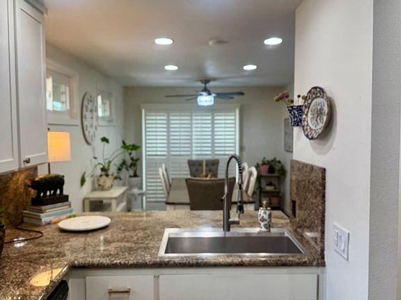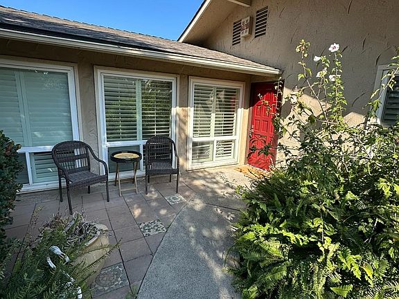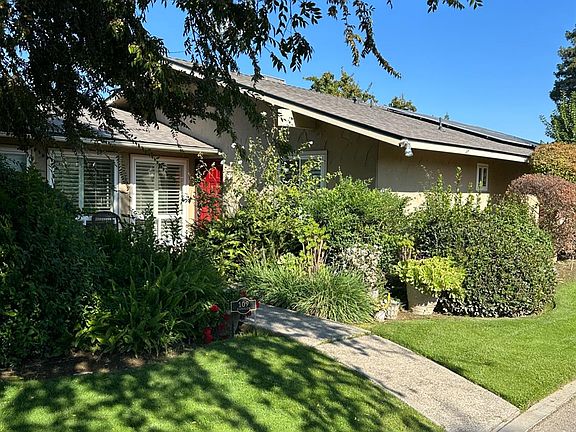Tucked away in a desirable North Fresno community, this thoughtfully designed condo offers both comfort and style. The spacious living room features exposed ceiling beams and striking herringbone flooring that adds warmth and character. The chef's kitchen offers generous counter space and flows easily into the adjacent dining area. A second dining area is located just off the kitchen and open to the living room, perfect for everyday living or hosting. Plantation shutters throughout bring in natural light while maintaining privacy. Both bathrooms include marble flooring for a clean, timeless look. Enjoy the benefits of owned solar panels, plus a low-maintenance backyard with newer landscaping and a deck ideal for relaxing or entertaining outdoors. Enjoy the benefits of 15 OWNED SOLAR panels, offering energy efficiency and lower utility costs with no annual True-Up bill. The property includes a spacious patio and newly landscaped yard area perfect for entertaining, plus a private patio off the primary bedroom ideal for relaxing. The attached 2-car garage provides secure parking and additional storage. The HOA covers water, trash, sewage, front yard care, and pool maintenance, making for easy living. Conveniently located near Eden Lounge, Manhattans, Max's Bistro, and Fresno Breakfast House.