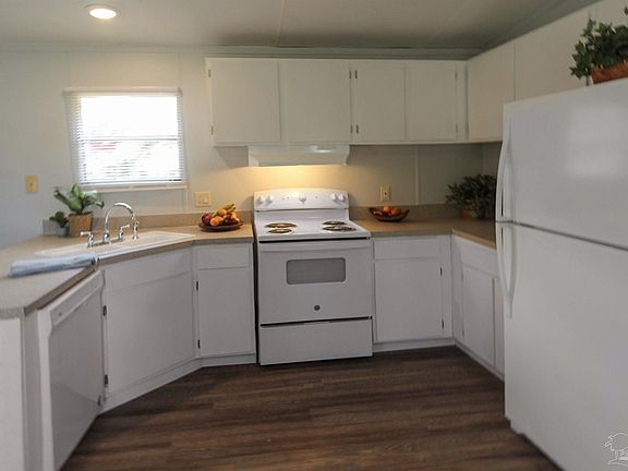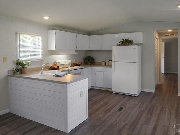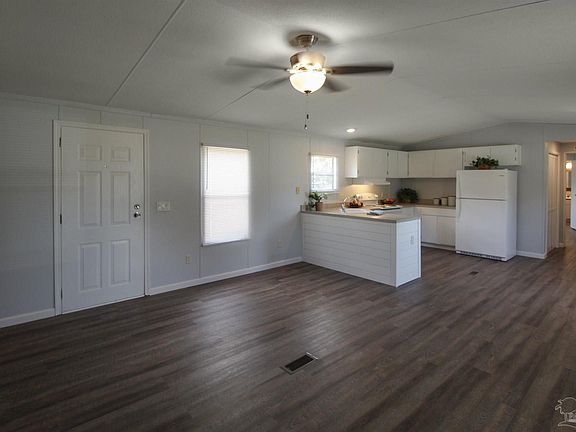 This charming mobile home presents an excellent opportunity for comfortable and convenient living on over a half-acre lot. With a desirable 3-bedroom, 2-bathroom layout, this home offers ample space and a host of recent upgrades, including a new roof, HVAC, water heater and floor decking, ensuring a worry-free living experience. The open floor plan seamlessly connects the living, dining, and kitchen areas, providing a cozy and inviting atmosphere for everyday living. The kitchen is equipped with updated appliances and plenty of cabinet storage and counter space. The primary bedroom is a private retreat, featuring a comfortable layout and an ensuite bathroom for added convenience and comfort. The two additional bedrooms are spacious and versatile, perfect for accommodating family members or transforming into a home office or hobby space. Beyond the walls of this delightful mobile home, you'll find a sprawling backyard on over a half-acre lot, providing endless opportunities to create your outdoor haven. Whether you envision a relaxing garden oasis, a recreational area for outdoor activities, or even a deck to savor the surrounding nature, this expansive space is yours to customize and enjoy. Close to local amenities, schools, and shopping centers, this community has no HOA, so there are no restrictions for those that may want to park a boat or RV on the property as well. Schedule your showing today for this great opportunity!