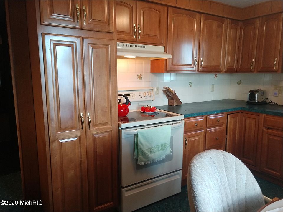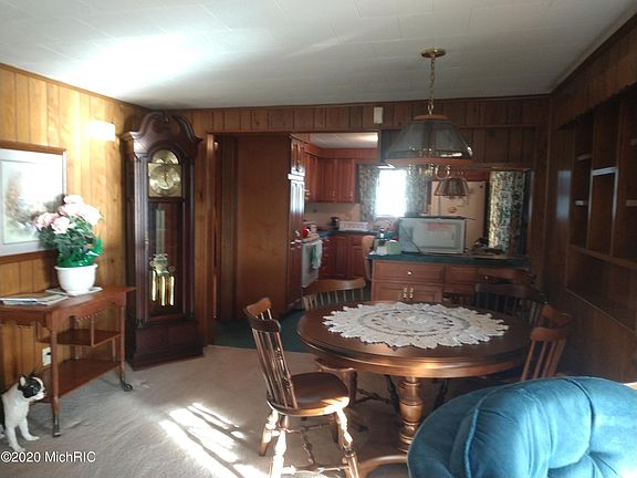 100' waterfront on Loon Lake Montcalm County. Sandy beach with 28' dock that comes with the property. Open floor plan year round cottage/home with two car attached garage. Home is a ranch and is also handy cap acceptable. Main floor laundry room with extra room being used as sitting room or enclosed porch. Under paneling in dinning room and living room is knotty pine. walls. Cherry cabinets in kitchen with formal dinning area. Home is loaded with storage,