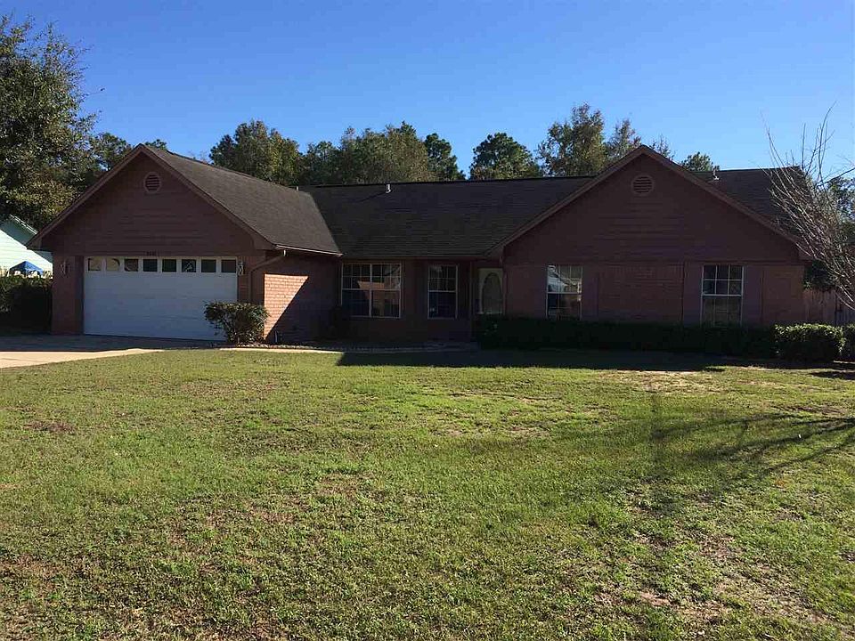 Have you been searching for a great home on a large lot! This wonderful all brick split plant home sits on over half an acre and offers easy access to Interstate 10 and Hwy 90. The home boast a Formal Dining Room and flexible Living Room or Office space. The Great Room features vaulted ceilings and a corner fireplace, and is open to the Kitchen and Breakfast area. The Master Bedroom is spacious and the Master Bath is loaded with double sinks, large garden tub/shower and 2 walk in closets. The opposite side of the house features 2 well sized additional bedrooms and hall bath. As if all this is not enough...enjoy extra entertaining space in your 20x12 Sun Room (not included in the square footage) that looks out to your huge back yard. Plenty of room here as well for the kids, dogs, garden and a shed is included to store all your extra stuff! With fresh paint, new carpets and new appliances this home is Move In Ready. With Up to 3% in closing cost assistance available to qualified buyers through HomePath Ready Buyer Program why wait another day to see this home!