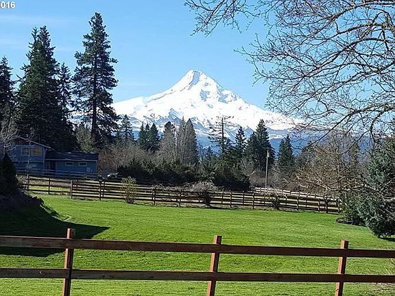 Fantastic Mt Hood view. View easement so can never be obscured. 3-bed w/ 4th bed or office capability. Solid rental history, sweat equity potential and/or opportunity to build your dream home to maximize view while living in existing home during construction. Covered front porch w/ Mt Hood view. 30''x20'' carport hold 3 vehicles. East Fork irrigation. Private, set back from Miller Rd. Owner may carry contract w/significant down payment.