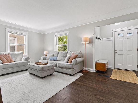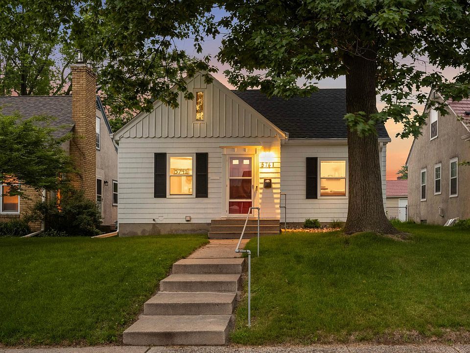 Charm galore in this adorable south Minneapolis bungalow! Just blocks from Lake Nokomis, you will absolutely love this darling one-and-a-half story. Step inside and enjoy updates throughout! The eat-in, renovated kitchen offers stainless steel appliances, quartz countertops, and white cabinetry. Beautiful hardwood floors span throughout the main level. The spacious living room will be the envy of your friends and family with its beautiful cove ceilings! Both bedrooms are located on the main level, with one walking out to a lovely screened porch, ideal for three of Minnesota's seasons. If you're looking for a home with potential for equity add, this is the ONE! Finish the upper half story (great ceiling height up here!) and/or the basement, and immediately triple the finished square footage of this home. Outside, you'll find a fully fenced yard and a one stall garage with secondary covered carport. Move in and ENJOY!