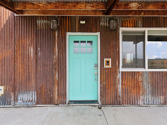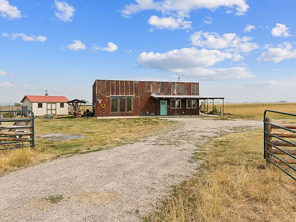 The existing 1,536 sq ft studio-style home provides a comfortable, functional living space while future plans are considered. The open-concept layout includes living, sleeping, and workspace areas, a full kitchen, and a spacious utility room. Twelve-foot ceilings, radiant cement floors, and a wood stove create efficient warmth and an open, airy feel. Durable metal siding reclaimed from the original owners family ranch in Drummond adds subtle Montana character.