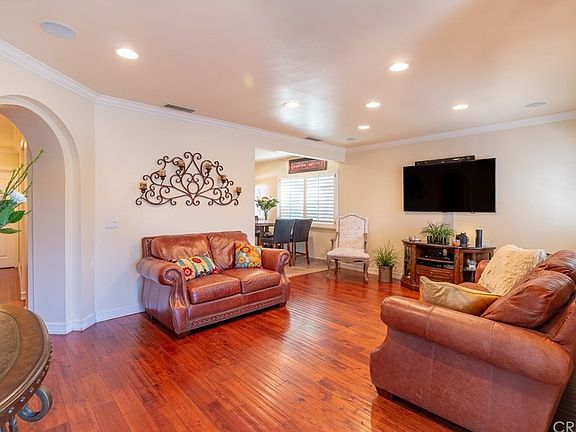 Pride of ownership and tranquility best describes this 3 bedrooms, 2 baths Sherman Oaks beauty! Situated on a peaceful tree-lined neighborhood, the beautiful curb appeal welcomes you to this recently UPDATED home. Some highlights include Real African Wood floors, recessed lighting, plantain shutters, crown and base molding throughout, newer A/C, Heater, Copper plumbing, emergency back-up lighting, TV's in every room and bathroom, spacious covered and heated driveway, surround sound in the outdoor lounge, and so much more! Every detail was carefully selected in this light, bright, and clean home. Features include a gourmet kitchen boasting spacious granite counter tops and back-splash, stainless steel appliances including a double oven and brand-new dishwasher, beautiful white cabinetry with soft closing drawers and built-in wine rack lattice. Bedrooms are comfortable and cozy. The hallway bathroom includes a large stone and glass shower with built-in seating bench. The large master bedroom encompasses a walk in closet, en-suite bathroom with dual sink vanity and Jacuzzi tub. The French doors opens up to a nice composite deck where you can relax while listening to the soothing brass water feature.The covered outdoor lounge includes a flat screen TV, bar top, gas heater, and Bose surround sound! It's easily accessible from the kitchen inside, and expands into a huge area of the covered driveway for additional entertaining space- if needed.