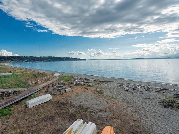 A stretch of lovely, sandy Mutiny Ba beach with superb sunset & mountain views beacons! One family has owned this home since it was built, has treasured memories of crab feeds, beach walks, bonfires, salmon fishing and getting away from it all. Sure, it needs TLC, but you'll be rewarded with a year-round or second home with 50 ft. on one of Whidbey's very best beaches. Decks on front & back, plenty of storage in the garage, house with "good bones." Come catch a sunset and fall in love .