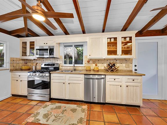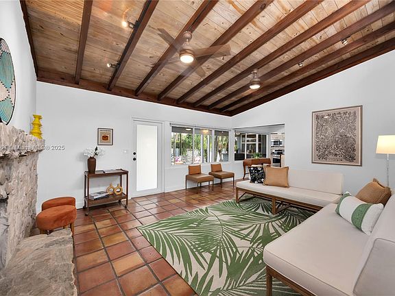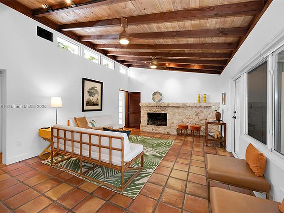This unique home blends striking design with mid-century modern influences: clerestory windows, vaulted, open-beam ceilings and a dramatic stone fireplace. The MAIN HOUSE has 2BR/1 BA, a spacious great room and a beautifully renovated bath. The patio and covered terrace connects to a cabana bath and a detached extra room perfect for den or guest room. Outdoor spaces shine with a tiki hut, built-in grill, bar with pass through, an outdoor shower, a spacious pergola/patio by entrance and a carport. A detached cottage offers 1 BR, kitchen and 1 bath and laundry for the property. Please see floor plan for distribution of the bedrooms (3) and baths (3). Located in popular Biltmore Heights. Main house has impact windows and doors. An entertainer’s dream and a private sanctuary all in one.
