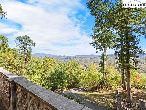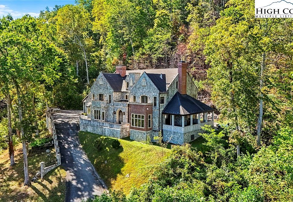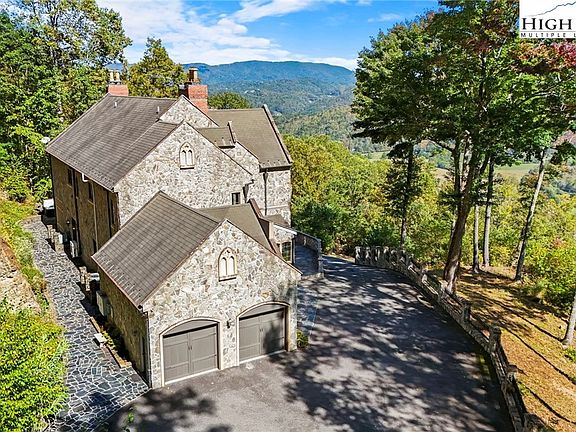 The Castle at Valle Crucis: This extraordinary compound features the rare assemblage of over 15 acres near the heart of the desirable Valle Crucis community, with a unique and majestic English Manor home with long-range, layered views of the surrounding Blue Ridge Mountains and pastures of Valle Crucis. Designed as a true replica of a Manor in Great Britain by William McLaughren, this one-of-a-kind estate features stone and building materials from around the world, as well as antique features and furnishings such as 17th to 19th century fireplaces, 500+ year-old arched entry doors from an English church, and even a chandelier imported from Princeton University, among others - see features list for more details on this unique offering. Resting at an elevation of over 3,400 feet, the property overlooks Grandfather Mountain and Howard's Knob, but features access off a paved, state-maintained road and is just 15 minutes from Boone, Banner Elk, and ski slopes at Sugar Mountain. With an impressive rental history, this home is offered fully furnished while in an established rental program, providing incredible investment potential, but would also make for a perfect mountain getaway or full-time residence. From the stone patio at the front of the home, step into the formal foyer with 24-foot soaring ceilings, adjacent to the large Great Room with a stone fireplace, antique chandeliers, and access to a covered stone patio- also with a fireplace and offering a hot tub & long-range, layered views. The chef's kitchen, also with a fireplace, offers granite counters, high-end stainless steel appliances, a dining area, and a walk-in pantry, and is adjacent to a sunroom/observatory with vaulted ceilings and a spacious laundry room with access to the oversized, two-car attached garage. The walk-in level also features a library and billiards room able to house 1,800 books (and with a plaster tracery ceiling imported from Great Britain), a formal dining room, a half bath, and a bedroom with an ensuite bathroom (one-level living!). Upstairs, the primary suite offers a private stone balcony, fireplace, walk-in closet, and bathroom with dual vanities, a soaking tub, and a tiled shower. Four additional suites exist on the second level (one also with a private stone balcony, and two being a Jack-n-Jill suite connected by one bathroom). Mahogany doors throughout were imported from England and are over 100 years old, adding antique charm, while modern amenities like an elevator to the first and second levels offer comfort and convenience. Upstairs, on the third level, find a spacious living room with game tables, a theater area, and an exercise area, along with a half bath. Additional amenities: 12-foot ceilings throughout, whole-house generator, interior & exterior sound system, water filtration system, whole-house generator, air scrubber & UV light for HVAC system. The existing driveway is fairly steep and winding; the seller is in the process of starting construction on a new portion of the driveway to eliminate the steepest turns.