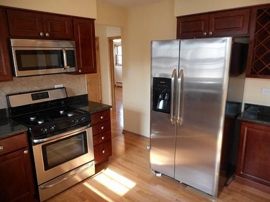 Stunning top floor 2 bedroom 1 bathroom apartment. Pet Friendly Unit is newly rehabbed with granite counters, stainless steel appliances. New hardwood floors throughout unit. Large bedrooms. Laundry on site One parking space Included in rent which allows for tandem parking, Available Now. No Security deposit. Granite Countertops, Dishwasher, Updated Bathroom, Updated Kitchen, Eat-in Kitchen, Heat Included, Hardwood Floors