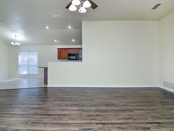 Extended all brick fireplaceOpen floor planFresh paintHigh ceilingsVinyl plank flooringLarge backyardCovered patio