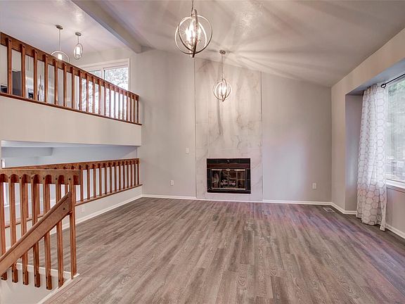 Cottage style home with attached garage and fully fenced yard. Newly remodeled, everything refreshed. New drywall and smooth ceiling treatment, New wide plank grey wash laminate flooring thru out. Fresh paint thru entire interior. Living room has vaulted ceilings, stainless lighting pendants and 2 story tiled gas fireplace. Kitchen is upgraded with new custom cabinets, glass back splash, new stainless steel appliances, stainless farm house sink and gorgeous granite counter tops. Dine in space in Kitchen with access to outside deck. Master bedroom with double closet and private deck. Bathroom has fresh marble look tile, new vanities and toilets. Lower garden level offers full size windows, light and bright with an additional living space, family room, or office. A guest bedroom and Bathroom with walk in shower. Laundry on lower level. Outside is maintenance free siding, fully fenced yard with sprinklers.