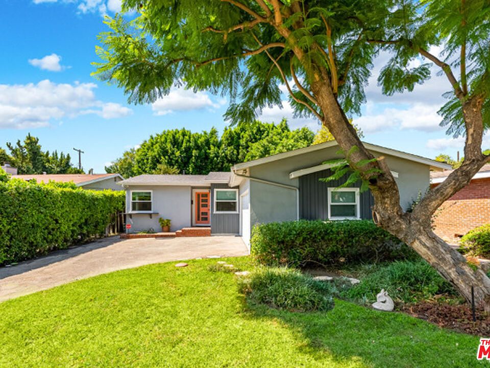 Remodeled 3 bd/2ba Sherman Oaks Mid Century on lovely treelined street in award winning Kester Avenue School District. Unfurnished Light and Bright modern kitchen features quartz counters, LG stainless appliances, ample pull out cabinets and bar top eating. This charming home features gleaming hardwood floors and a brick fireplace in the open concept floor plan with slider to the private and spacious back yard with brick patio. Remodeled bathrooms with decorative tile and glass bath enclosure. Central HVAC, attached two car garage with direct entry and washer dryer. Additional parking for cars in driveway and pet friendly!