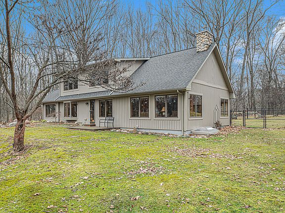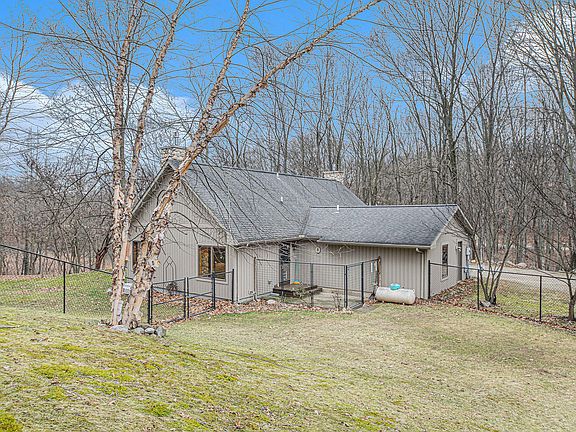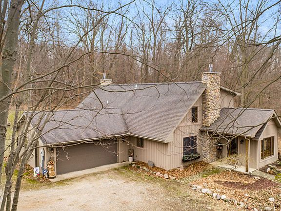 Be ''Up North'' with out actually having to go ''Up North''! Take the winding driveway through the woods to this immaculately maintained home. Knotty pine tongue and groove through out the home, with two fireplaces. This home has 2 bedrooms and 2 full baths with a possibility of a bedroom in the basement which has egress. There is an attached two car garage and a pole barn with a screened in porch looking out at the 10 acres of woods! There are trails through out the property and you will see many deer and other wildlife. This home is heated and cooled with an efficient geothermal system. The main yard is all fenced in and connects the pole barn and house. A unique property like this rarely comes on the market. Multiple offers received.Highest and best due by 1/24 5pm.