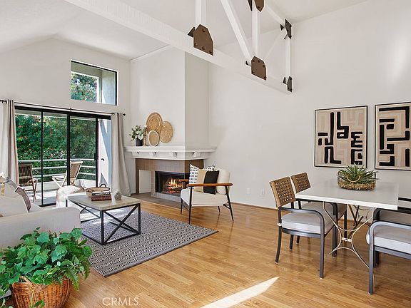 Welcome to your own private retreat in the highly desirable Villeurbanne Community of Orange! This charming one-bedroom, one-bath condo is perfectly situated in one of the community's most sought-after locations, surrounded by lush trees and greenbelts. Step inside to find a bright and open layout featuring dramatic vaulted ceilings, oversized skylights that flood the home with natural light, and a cozy fireplace as the centerpiece to the living room. The spacious dining area offers bar-top seating to the kitchen. A private balcony extends your living space outdoors, ideal for al fresco dining or simply relaxing with the peaceful greenery. The generously sized bedroom is bathed with natural light and features ample closet space. Additional highlights include an inside laundry closet with full-size washer and dryer. Residents of Villeurbanne enjoy resort-style amenities including sparkling pools, relaxing spas, BBQ areas, and access to a private reservable community center. Outdoor enthusiasts will love the nearby walking paths, hiking trails, and close proximity to Peter's Canyon and Irvine Regional Park. Convenient freeway and toll road access makes commuting a breeze. This home is an incredible opportunity to enjoy peaceful living in the hills of Orange.