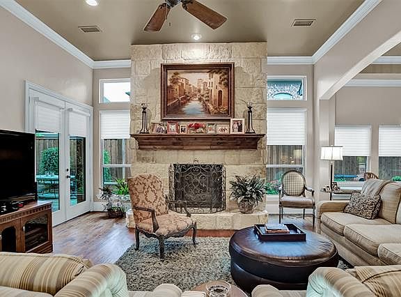 Custom home in Avignon Windhaven. Numerous upgrades include handscraped hardwood floors, Bower & Wilkens built-in speakers, grand 2 story entry with custom painted dome and groin vault ceiling in dining room and alcove. Enjoy perfectly chilled wine from the climate controlled wine room while relaxing under the custom pergola in the private backyard, enjoying a stone waterfall and the built-in Lynx 36â gas grill with sear burner. Exquisite master suite with spa-like bath. Fabulous game room up has vaulted beamed ceiling and custom wet bar with fridge. Professional Viking appliances grace the kitchen, including 6 burner gas range and double ovens.