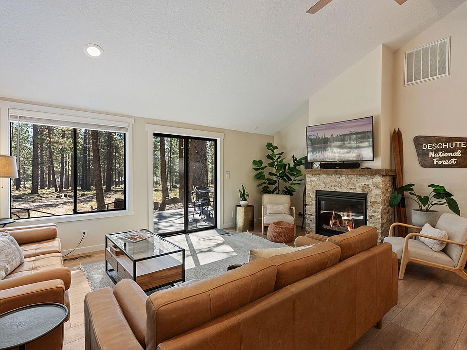 Turn-Key Sunriver Retreat - Renovated 3BR/2BA with Strong Rental Income. In the heart of Sunriver, this fully renovated 3 bedroom, 2 bath home offers comfort, style, and investment appeal. Extensively updated in 2022 with a new roof, flooring, kitchen, bathrooms, paint, gas fireplace, doors, fixtures, and furnishings, it's truly move-in ready. Backing to open forested space, the property provides privacy while being within walking distance to Fort Rock Park, SHARC, and the Village. Proven as a high-performing short-term rental, the home averaged 222 rented days per year with gross annual income of $61,243. Modern upgrades: new heat pump w/ AC, gas fireplace, recently purchased furniture and décor add lasting value. Whether a full-time residence, vacation retreat, or rental investment, this turn-key property blends location, function, and income potential in one exceptional Sunriver package.