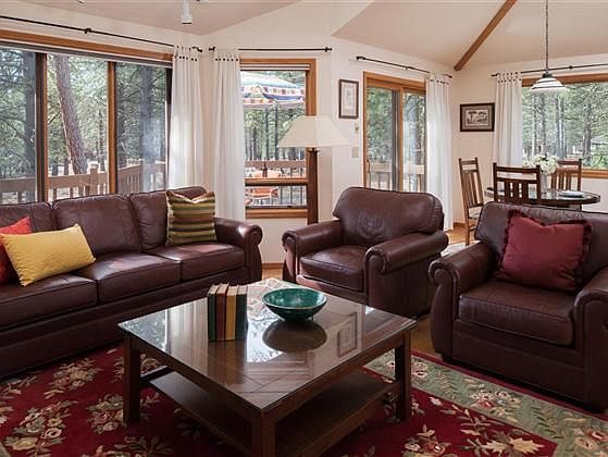 Updated home in quiet and private cul-de-sac, backing to RARE panoramic forest views! Deck space overlooking HUGE common space w/out another home in sight! Updated kitchen and bathrooms w/ slab granite surfaces. Large Center Island, pneumatic cabinets and appliances. Hardwood floors, alder cabinets .Gas free standing fireplace, vaulted great room w/ wood beam accents. Plumbed for a hot tub, oversized single car garage. Metal roof w/ heat tape in gutters. Sold mostly furnished. Perfect size fo...